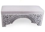 The captivating mid-sized Bench Perforated Full Mother of Pearl (Sadaf) with its intriguing Eastern Ancient Arc Design. This remarkable piece of furniture gracefully blends the elegance of modern aesthetics with the timeless charm of cultural heritage, making it an exquisite addition to your living space.